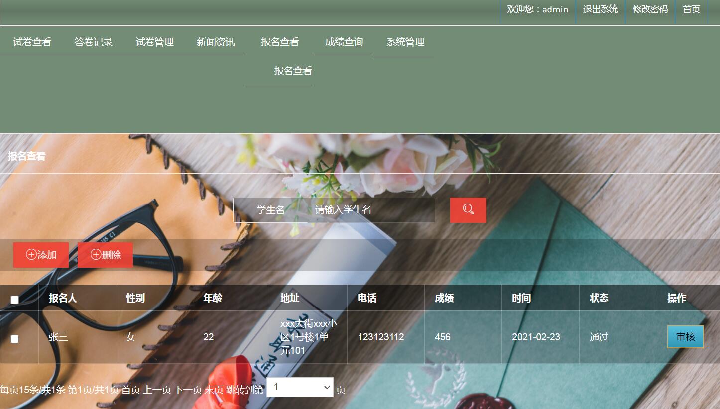 关键词:报名;招生;考试;录取;SSM