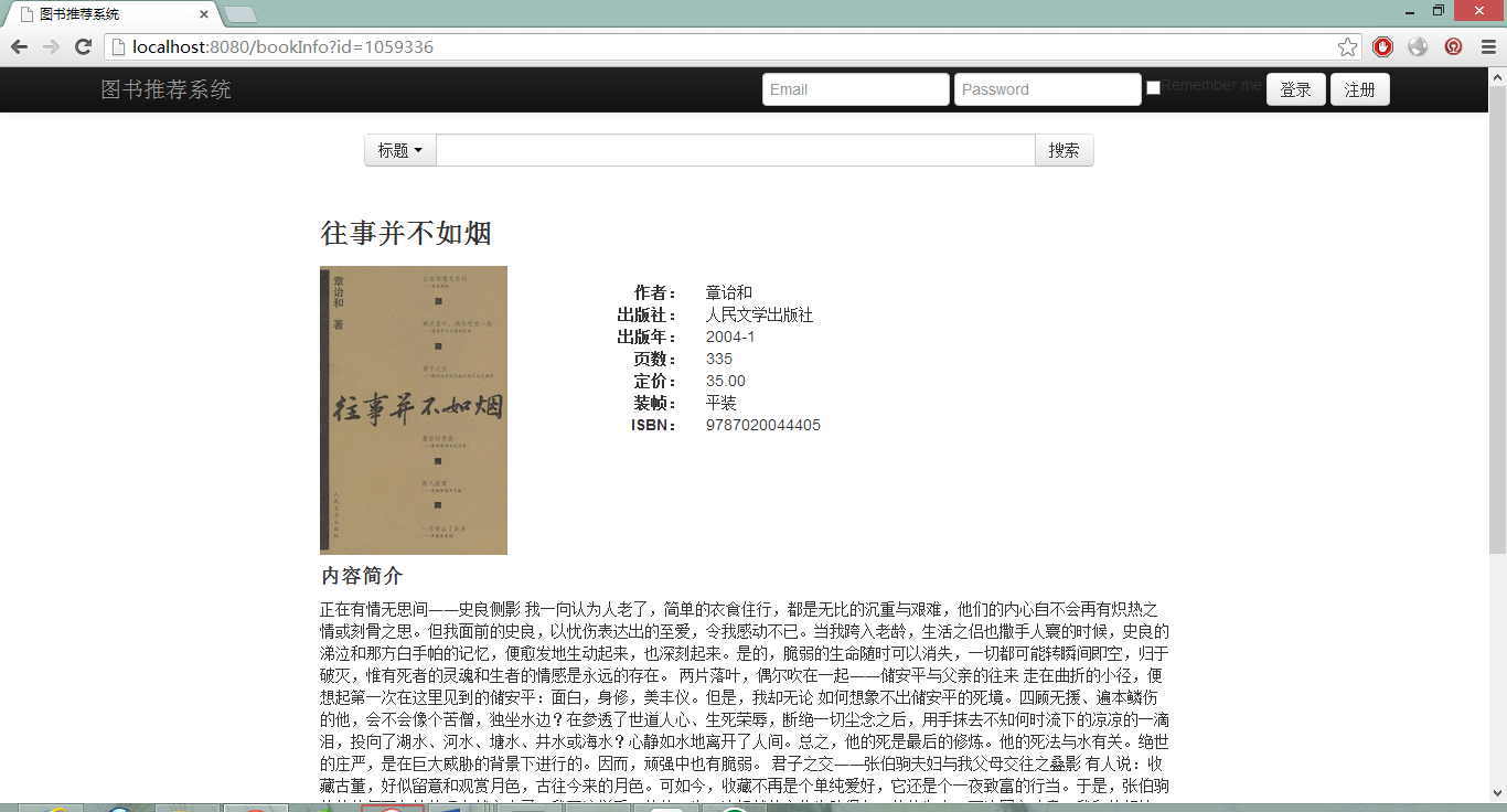 本次图书智能推荐系统前端采用Bootstrap框架,后台采用Java的SSM框架和Mysql数据库,将系统分为了三层:Web层、服务与模块层、数据层,并对每层的结构与需要完成的功能做了定义。并建立了图书智能推荐系统所需的数据库,该数据库的数据共分为三个部分:原始数据、清洗后数据和用户数据。设计了图书智能推荐系统的页面,主要包括首页、搜索、展示、登录、注册等页面。经过后期的数据库优化与功能测试,系统与同类网站相比,性能良好。