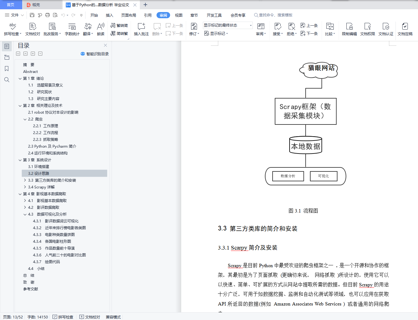 本毕业设计用Python的Scrapy框架编写爬虫程序抓取了中国影业的影片榜单信息,爬取电影的短评、评分、评价数量等数据,并结合Python的多个库(Pandas、Numpy、Matplotlib),使用Numpy系统存储和处理大型数据,中文Jieba分词工具进行爬取数据的分词文本处理,wordcloud库处理数据关键词,最终通过词云图、网页动态图展示观众情感倾向和影片评分统计等信息。网络信息资源充盈的今天,网络信息的获取工作十分重要,该毕业设计的意义在于为用户观影提供决策支持。