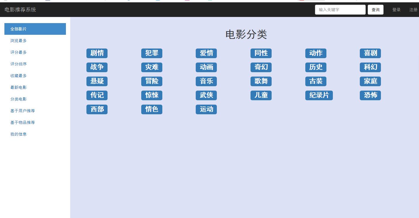 The programming language involved in this film recommendation system includes Python、Html5、JQuery、CSS3 and SQLite database programming. The framework used is Django heavyweight web framework, which connects the front and back end of the system. Users first need to fill in the user name, password and mailbox registration system before they can log in to the recommendation system.