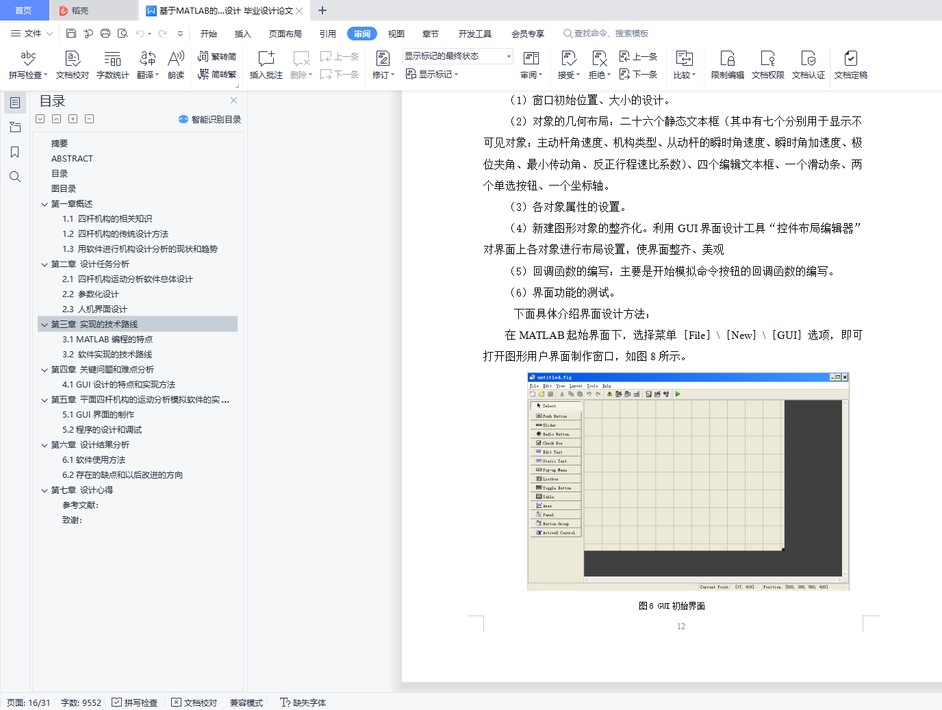 关键词:人机界面;四连杆机构;仿真;MATLAB;GUI
