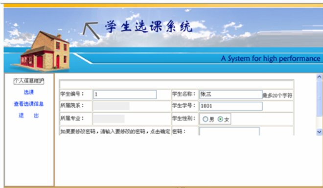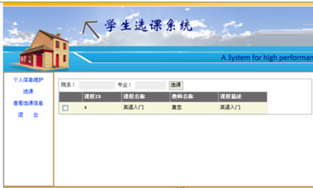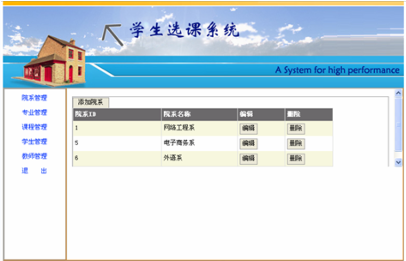 This project is based on some university’s basic needs and developed by Visual Studio 2005 and ASP.NET, SQL Server. This system completed the function of department management, major management, course management, teacher management, student management and online-course-choosing and so on. When the B/S system in working, the Users only need a personal computer can access the site for completing course-choosing and relating information management. This system can meet the current college's needs.