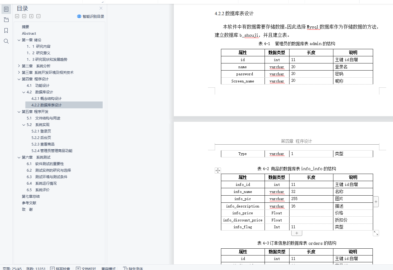 4.2.2数据库表设计