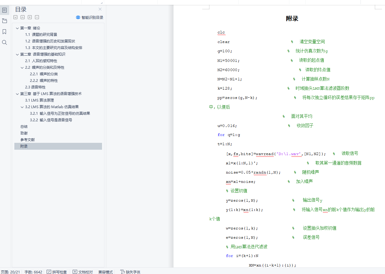 关键词:语音增强,噪声,质量,可懂度,LMS算法