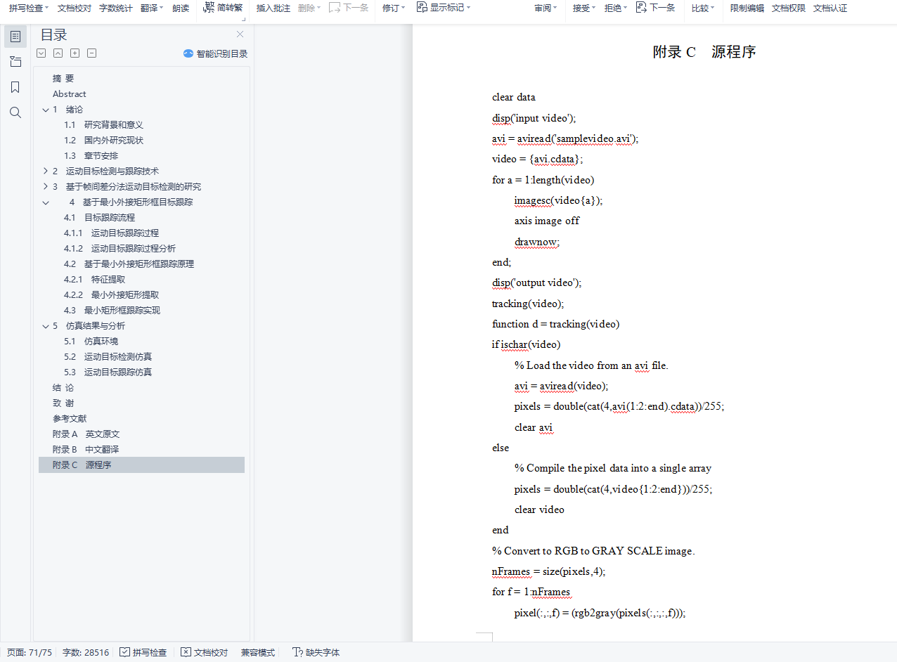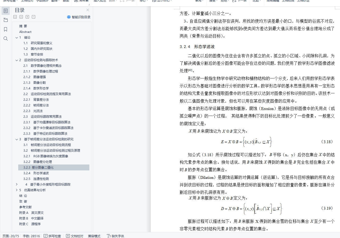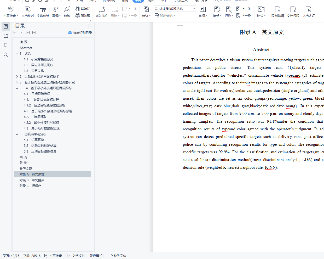 本文主要研究静态背景下运动目标的检测、运动目标跟踪以及相关结果仿真分析三方面的内容。运动目标检测方面,在分析了目前比较常用的三种目标检测方法,即光流法、帧间差分法、背景相减法的基础上,着重研究了基于帧间差分法运动目标检测的算法原理及流程,讨论了三种检测算法的优缺点。运动目标跟踪方面,在分析了目前比较常用的三种目标跟踪算法,即均值漂移算法、卡尔曼滤波算法、基于特征的目标跟踪算法的基础上,重点研究了基于特征――最小外接矩形框运动目标跟踪算法。分析了其算法原理以及跟踪步骤。最后用matlab软件采用帧间差分运动目标检测法以及基于最小外接矩形框跟踪法对含有运动目标的视频进行仿真。