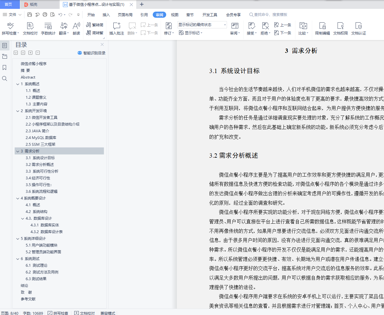 关键词:微信点餐小程序;java语言 Mysql 数据库 SSM框架