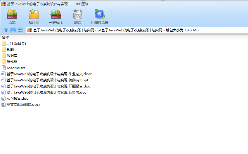 该毕业设计说明书系统地解释了电子政务软件系统在公众服务这一职能上的功能及实现。系统功能包括用户注册及登录,政务查看,意见反馈和文件下载,管理员登录,对政务进行增、删、改、查等重要功能,基本上实现了用户在线使用电子政务软件系统的功能流程。本电子政务公共服务网站界面直观,易于操作,功能性强。