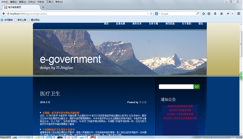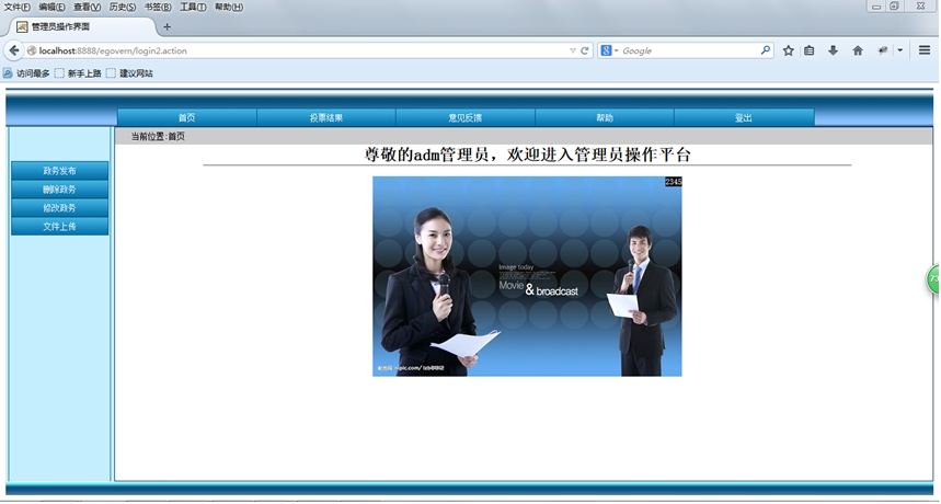 The graduation design instruction systematically explained the e-government software system in the public service function on the function and realization. System functions include user registration and login, political view, feedback and the file download, the administrator login, to insert ,delete ,modify and query affairs, basically has realized the online using the electronic government affairs function of software system process. The electronic government affairs public service website is interface intuitive and easy to operate, functional.