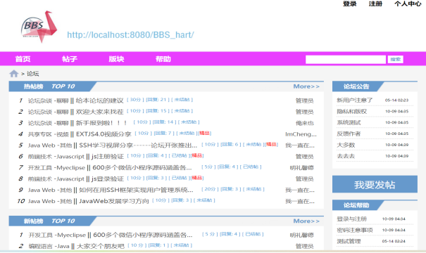 本论坛采用当今流行的SSH(struts+Spring+Hibernate)三大框架技术进行开发,数据库是具有良好性能的Mysql数据库,通过结合jQuery、html、jsp、css、div等技术,根据软件开发的过程进行需求分析、概要设计、详细设计、编码和测试等来实现和完善本论坛系统。