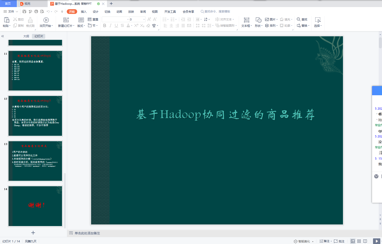 基于Hadoop的电商的分布式大型推荐系统这一课题,我通过阅读大量的文献和研究,分析了国内外研究现状及面临问题。对电子商务推荐系统常见的推荐算法讨论,还有本文还对Hadoop平台的两大核心技术HDFS和MapReduce的工作流程和原理进行了介绍。对于电子商务传统推荐系统存在的很多问题,我论文基于Hadoop的电商推荐系统,系统有Hadoop的优点能具备良好的可扩展性伸缩性,可以方便快捷的对系统的计算能力和存储能力调大调小根据业务需求进行调整。对数据预处理、基于物品的协同过滤推荐算发还有混合推荐算法的相似性计算等算法设计,使之完美的运行在Hadoop平台上,实现分布式的推荐计算。