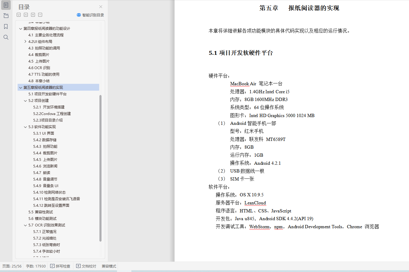 5.1项目开发软硬件平台 20