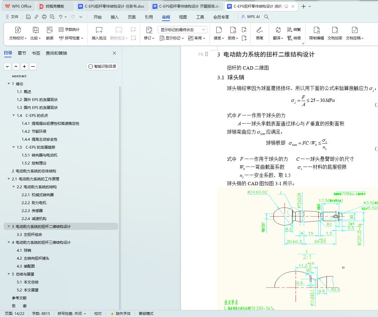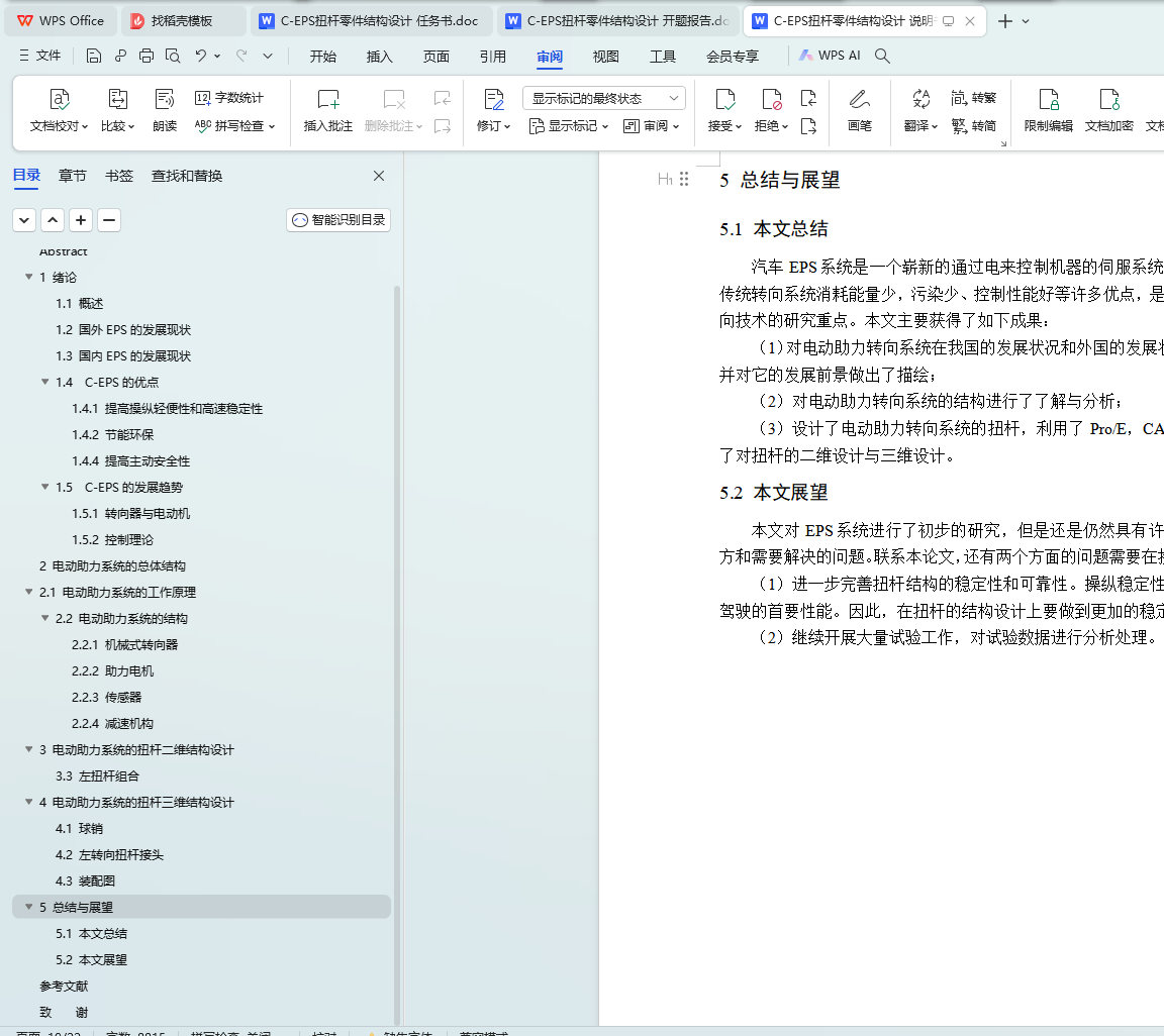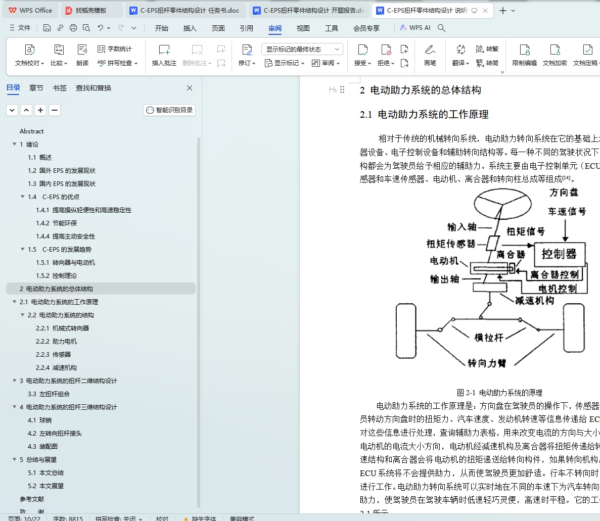 本文针对C-EPS扭杆零件的结构设计进行了深入研究。首先介绍了C-EPS扭杆零件的基本功能和特点,然后详细阐述了其结构设计方案,包括材料选择、形状设计、尺寸确定等方面。最后,本文还对C-EPS扭杆零件的结构设计进行了总结,指出了其优点和不足之处,并提出了改进建议。