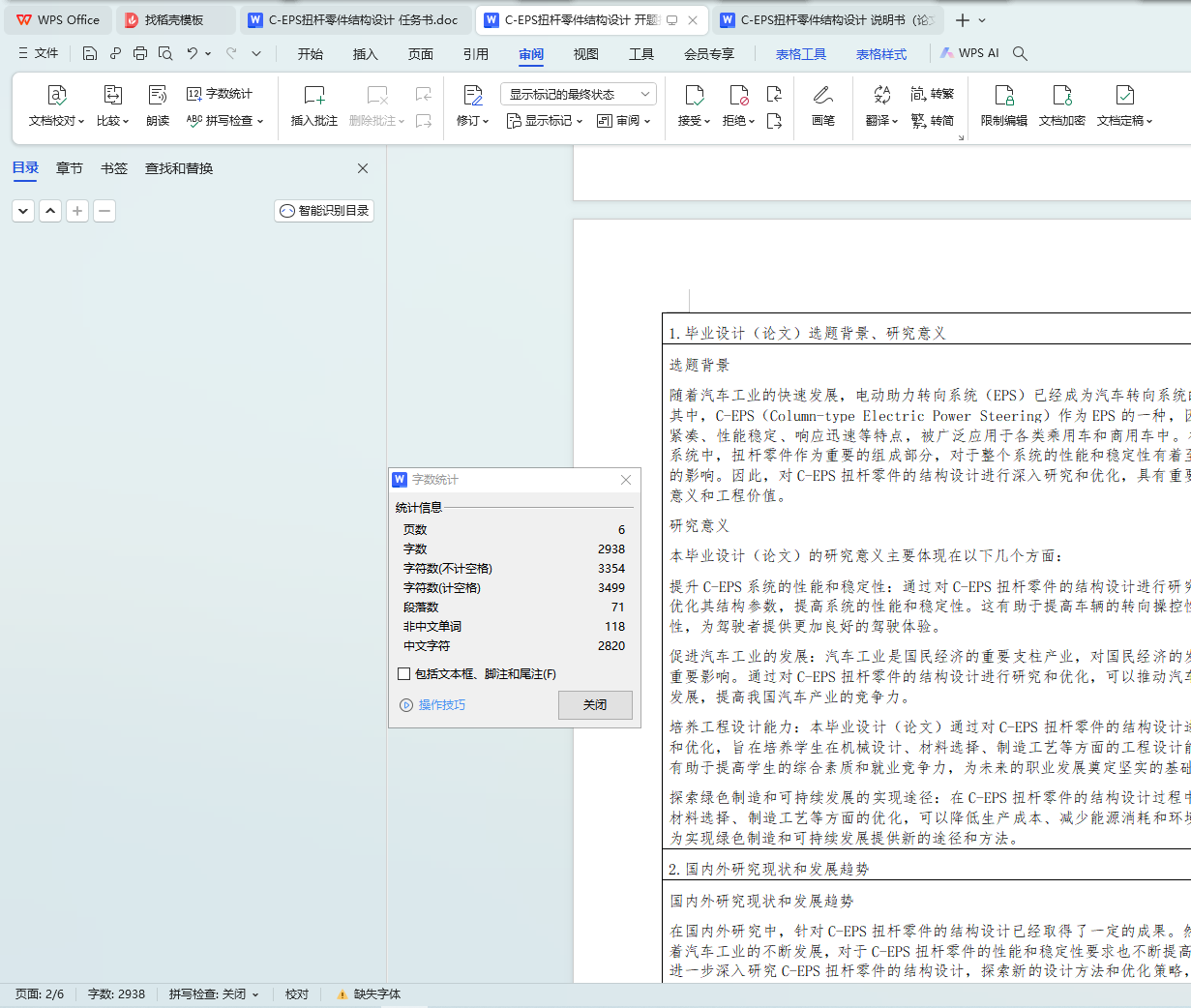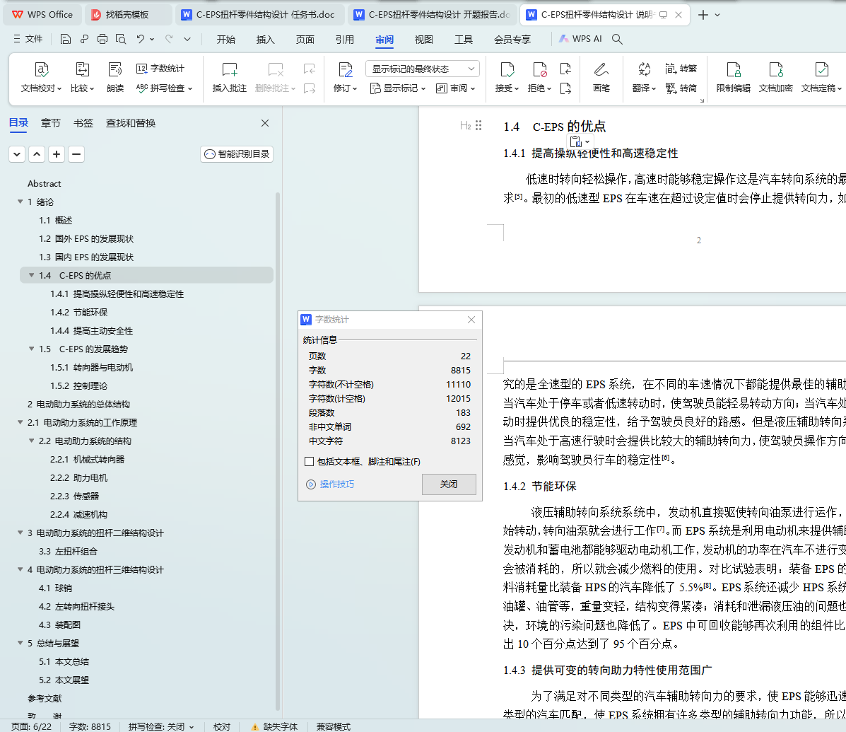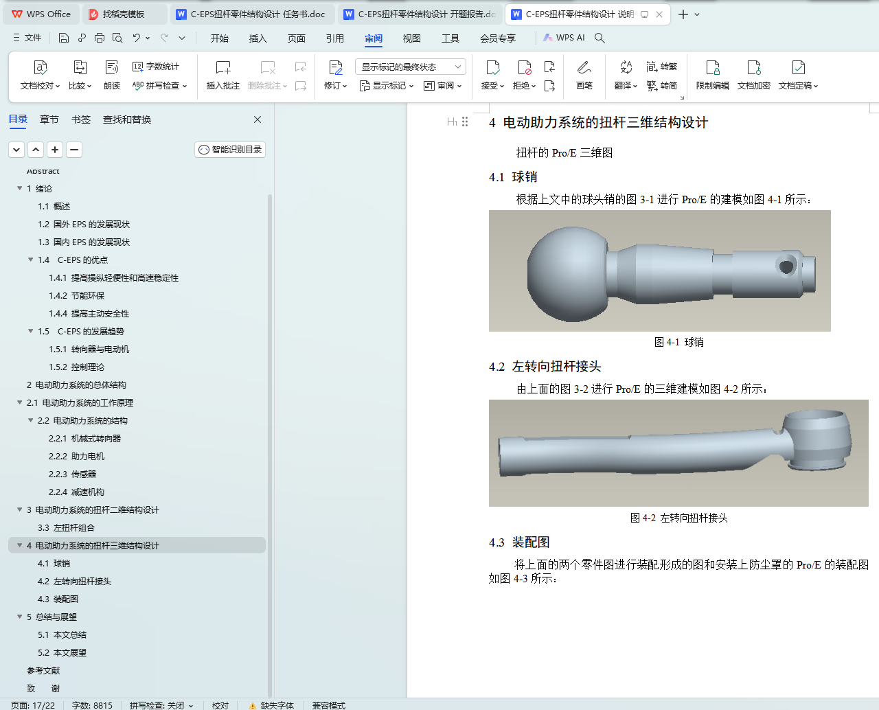 本文针对C-EPS扭杆零件的结构设计进行了深入研究。首先介绍了C-EPS扭杆零件的基本功能和特点,然后详细阐述了其结构设计方案,包括材料选择、形状设计、尺寸确定等方面。最后,本文还对C-EPS扭杆零件的结构设计进行了总结,指出了其优点和不足之处,并提出了改进建议。