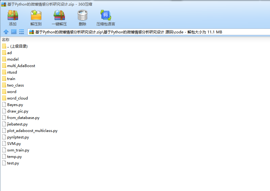 首先,使用微博官方的API对微博进行抓取,进行分类标注。然后,对微博文本进行预处理,主要包括去掉无意义,对微博文本没有影响的词语。其次,使用SVM算法对文本进行初步的筛选,主要是去除特别明显的广告等无关性的微博。最后使用朴素贝叶斯对微博进行情感分析,将微博分为积极、消极、客观三类,同时使用AdaBoost算法对朴素贝叶斯算法进行加强。