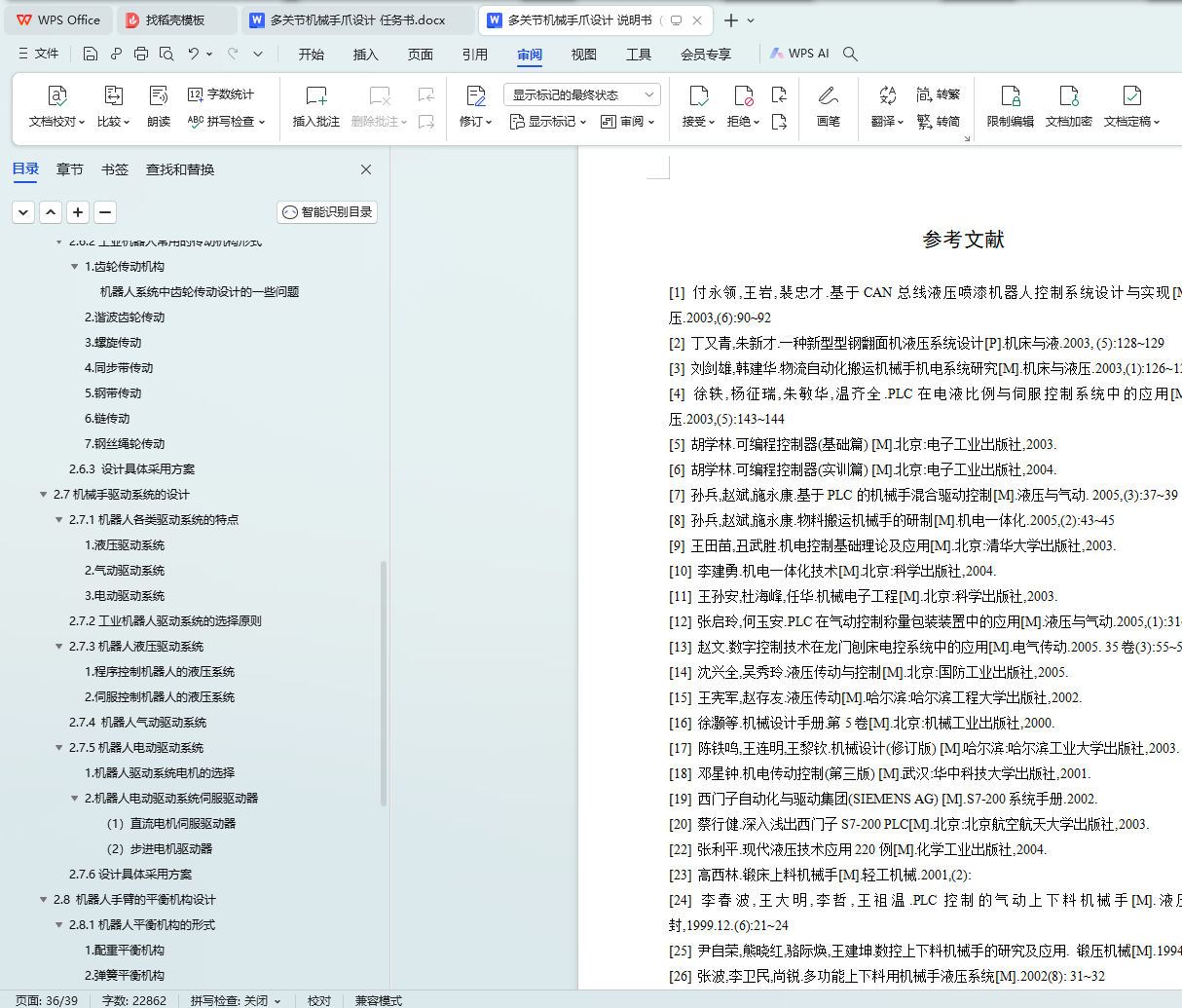 本论文针对多关节机械手爪的设计进行深入探讨,以实现对方形或柱状物体的自动夹紧和松料。论文首先概述了机械手爪的总体设计方案,并重点对其结构、机构和传动机构进行设计。设计过程中考虑了机械手爪的主要零部件,包括伺服电机、控制机械手升降的电缸、步进电机、减速器、十字支架连杆、牵引杆、动力杆及延伸滑槽和指尖等。论文详细介绍了每个零部件的功能和设计特点,并利用3D设计软件Solidworks建立了搬运机械手的整体模型。此外,论文还对关键零部件进行了强度及刚度校核,以确保机械手爪在工作中能够稳定、安全地运行。