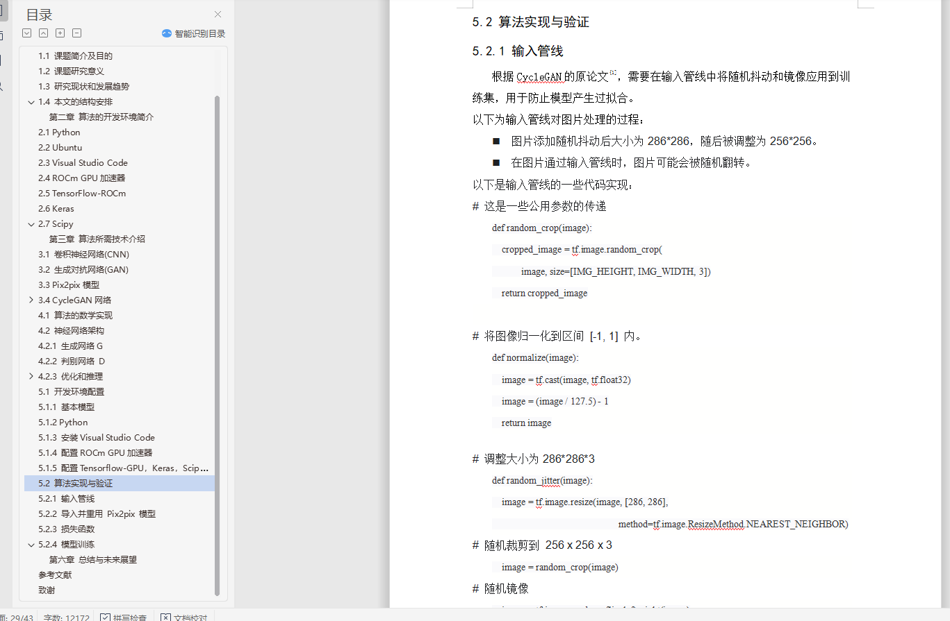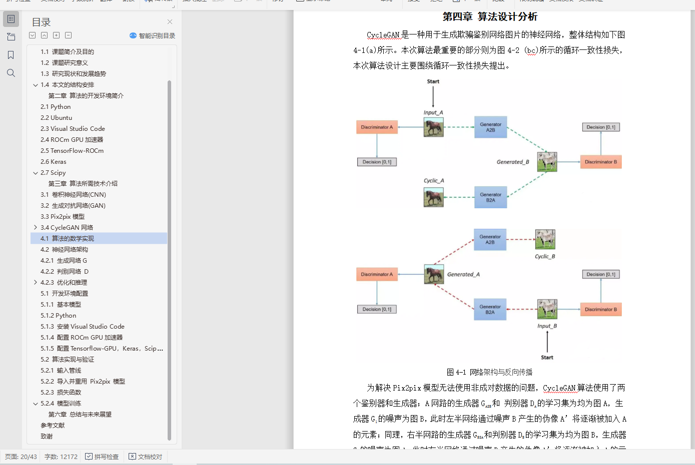 本文针对上述问题,基于几种图像合成算法,提出一种可以不使用成对的训练数据即可自动生成特效图片的算法。该算法基于CycleGAN算法改进而来,通过使用对抗神经网络GAN,比较了风格迁移、物体变形、季节转换、照片增强等工作状况下的神经网络的结果。实现了特效图片的生成,经过比较,该神经网络模型在无成对训练数据的情况下比Pix2pix模型表现的更好。