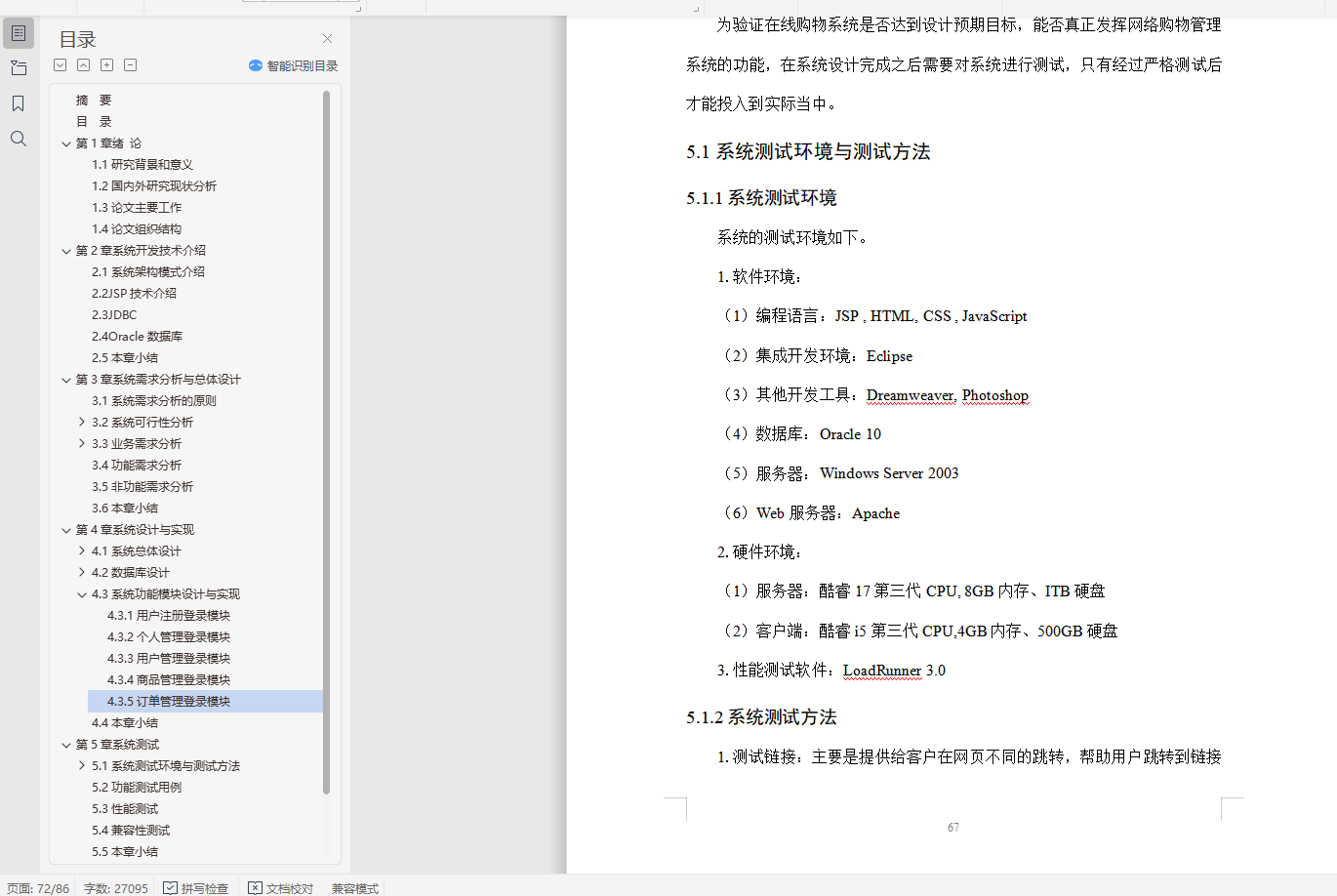 5.1.1系统测试环境 67