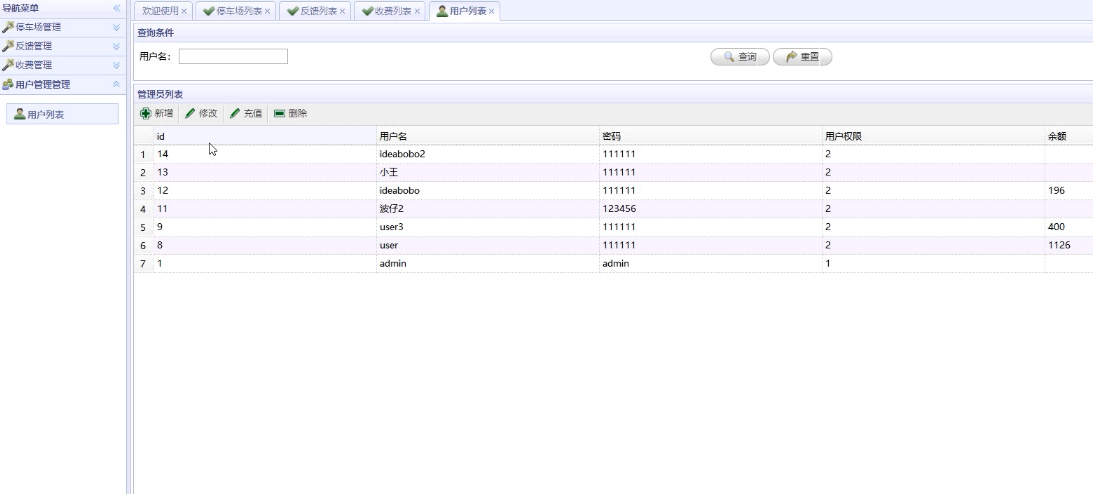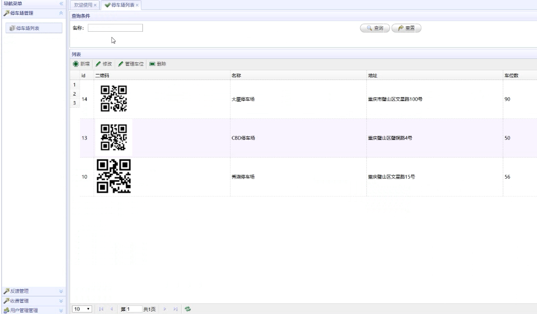 The parking lot management system of Wechat applet is designed based on C/S+B/S mode. It is implemented by Wechat applet+JSP+MySQL database. The system is composed of Weixin small program end and background management end. The Weixin small program can be used by registered users. Its functions include parking lot display (map/list), parking reservation, parking lot collection, navigation and personal center (my wallet, my collection, personal information modification, password modification, feedback, etc.). Users can pay parking fees online. The functions implemented by administrators include login, parking lot management, feedback management, charge management and user management.