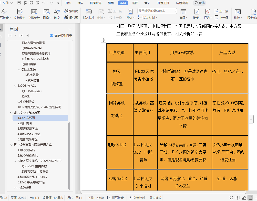 五、 设备选型与网络详细方案 22