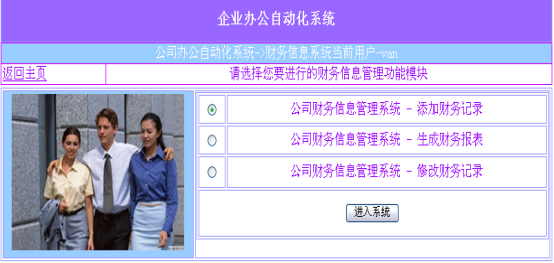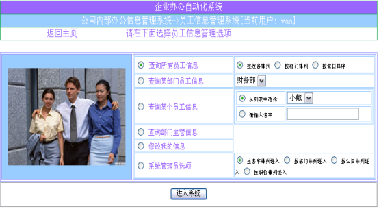 办公自动化作为企事业单位的信息处理与管理集合,对于单位的领导来说,它是决策支持系统能够为领导提供决策参考和依据;对于中层管理者来说,它是信息管理系统;对于普通的管理者来说,他又是事物/业务处理系统。办公自动化能够为企业的管理人员提供良好的办公手段和环境,使之准确、高效、愉快的工作。对于一个企业来说,最经常的办公任务有企业员工管理、企业财务管理和企业信息内部交流。