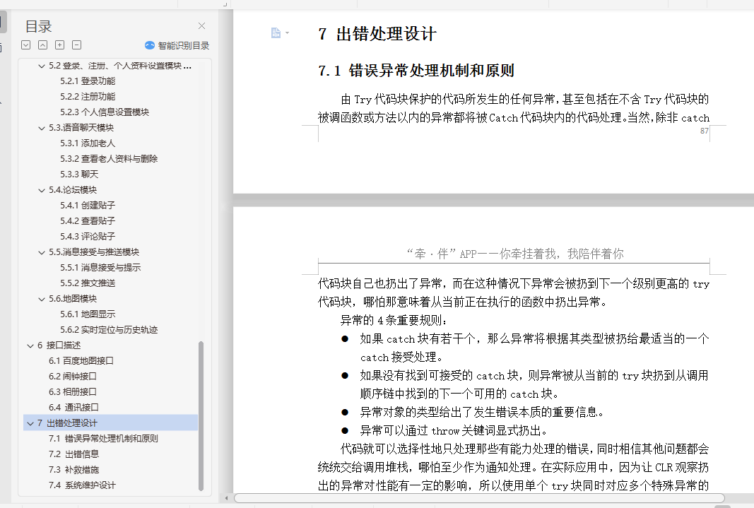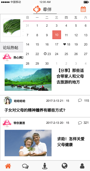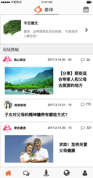 牵伴APP设计与开发――专业综合设计课程作业。项目包括源码,DEMO,需求分析说明书,系统设计说明书,测试等文档。“心之桥”是一款连接父母与子女温情纽带的手机应用软件。现代社会中,部分子女由于工作、学习、结婚等多方面的原因而离家。随着社会老龄化程度的加深,空巢老人越来越多,已经成为一个不容忽视的社会问题。APP大致开发背景如下:“牵伴”这款产品注重子女对父母的精神赡养,搭建一个父母与子女之间感情与思想交流的平台。其用户界面分为父母端与子女端。由于父母的视力、听力一般随着年龄的增加而逐渐减弱,父母端界面应该做到简洁明了比如字号大、操作简单、每个功能设置语音提醒等。子女端既要能达到对父母日常生活的掌握比如位置追踪、远程监听等等,也应该达到对父母的精神赡养比如亲情语音等。与此同时,子女还可以通过“牵伴”内置论坛参与讨论赡养父母等问题。