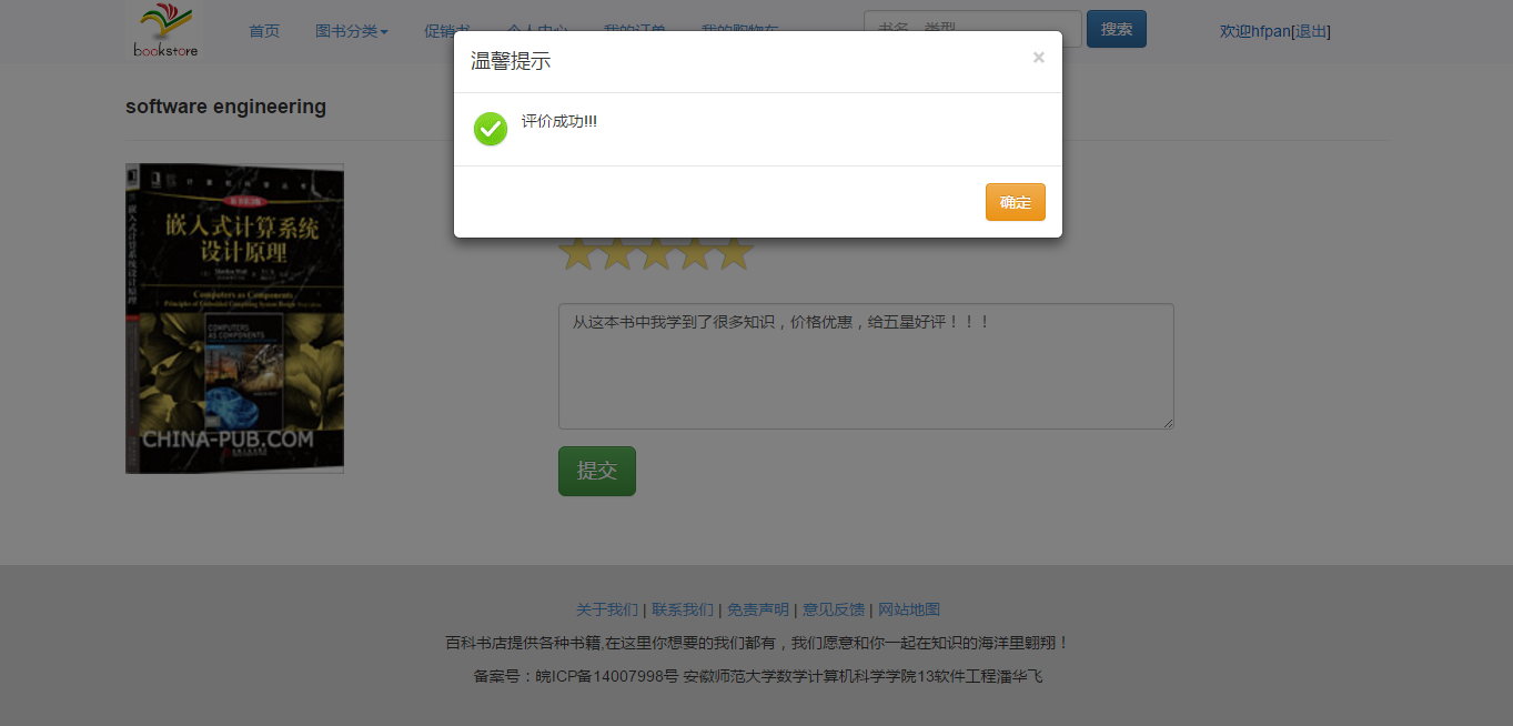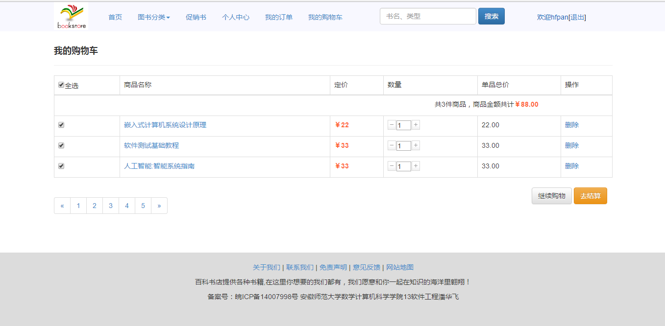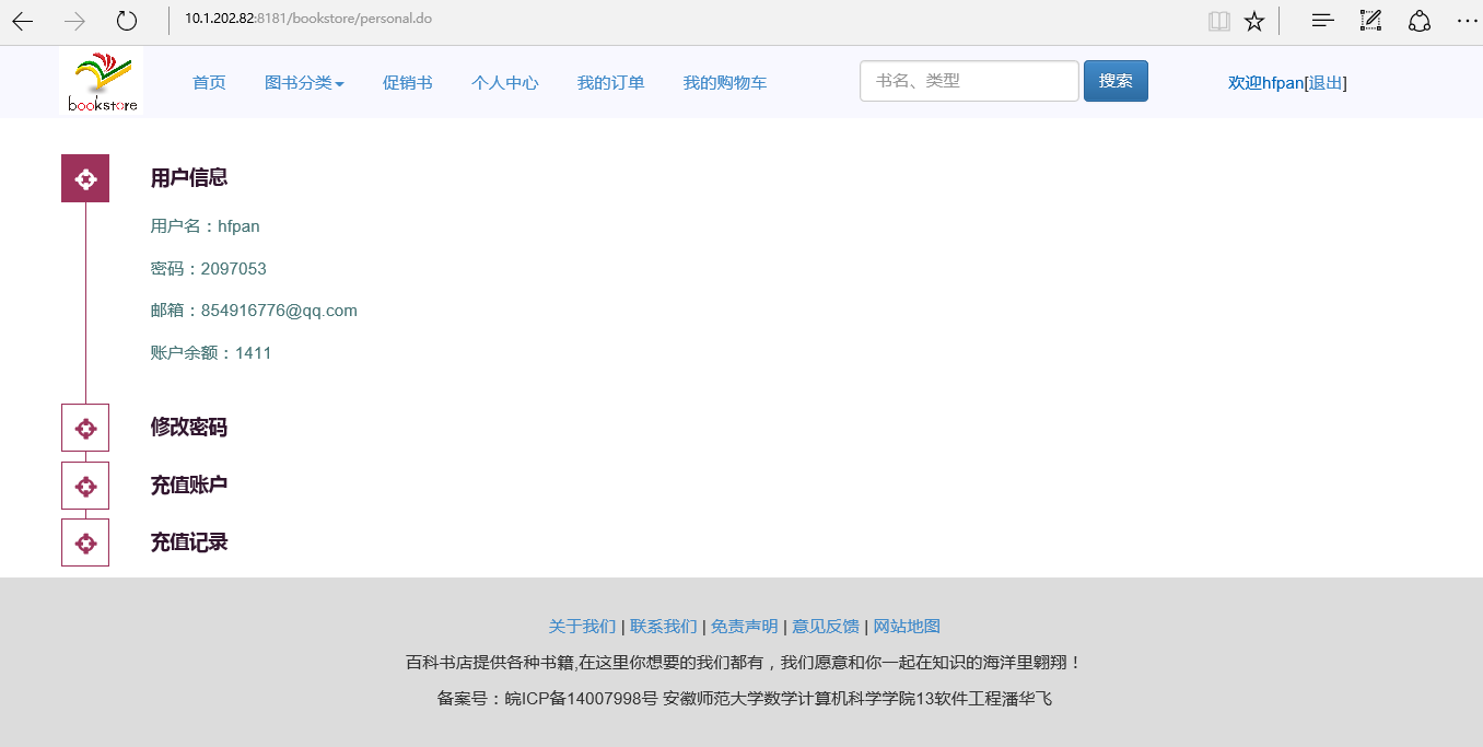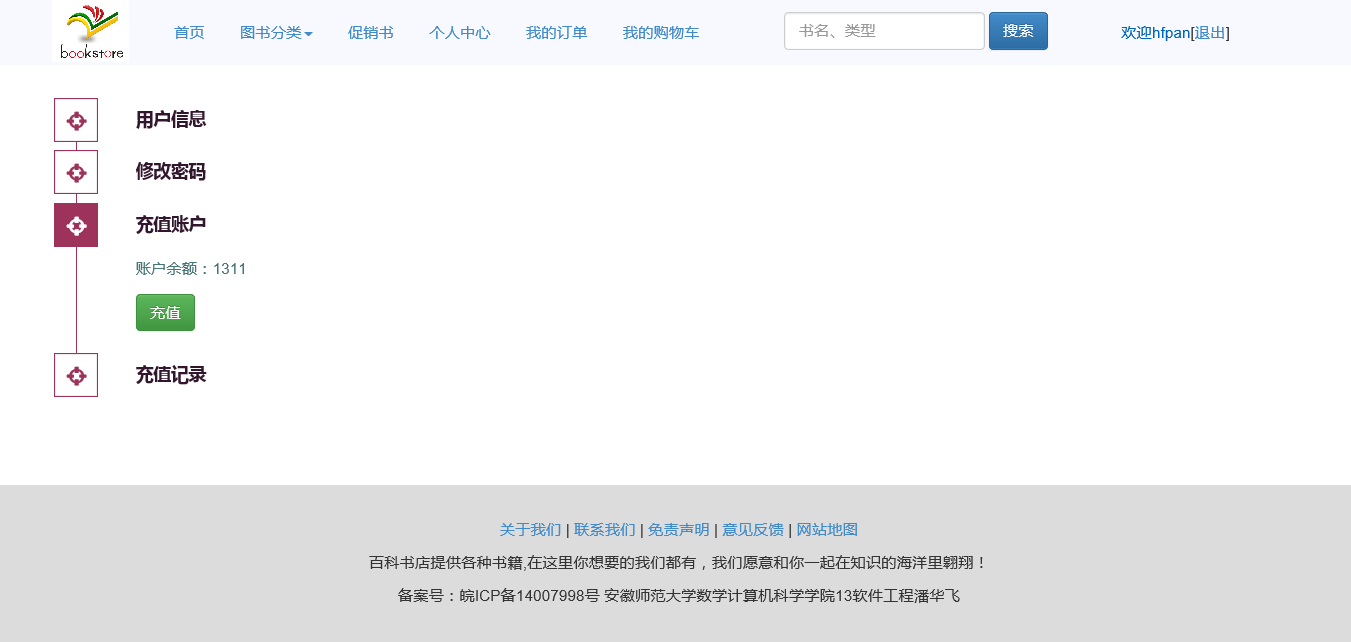 The system implements the functions of user management, book search, book sales, shopping cart, order management, payment recharge and so on. After the completion of the system development, after the test, its function can be normal operation, to meet the needs of users.
