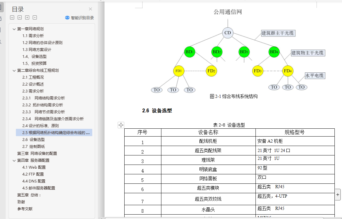2.5根据网络拓扑结构确定综合布线的系统结构 - 2 -