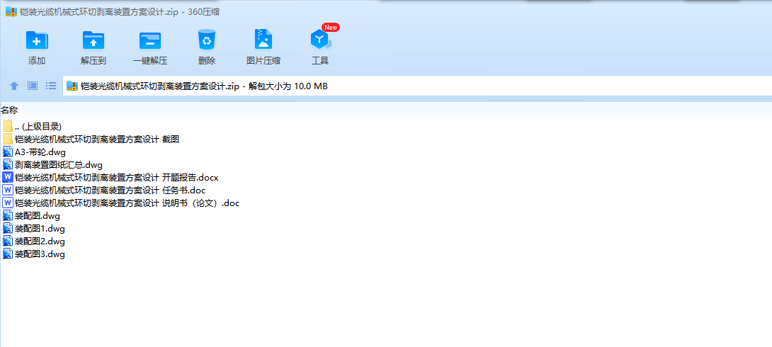 关键词:铠装光缆;环切剥离装置;方案设计;机械工具;动力源;装配图;零件图