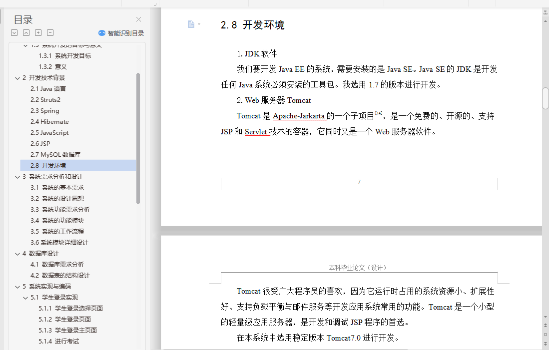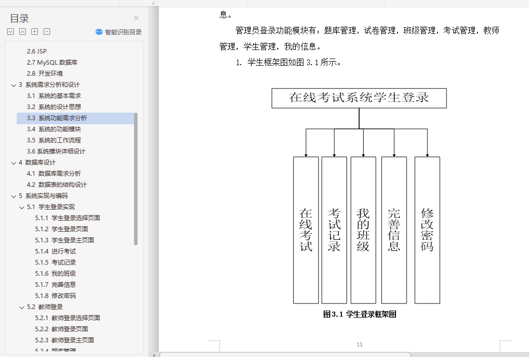 本次项目实训的题目是在线模拟考试系统的设计与实现,系统采用浏览器/服务器模式开发,包括登录注册、在线考试、试卷设置、试题管理、分数的统计以及成绩查询等功能。系统运行在Windows操作系统上,以Tomcat作为Web服务器,使用SSH+JSP技术和MySQL数据库实现。