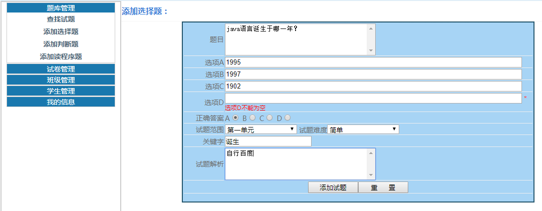 关键词:在线考试;JavaWeb;浏览器/服务器;MySQL