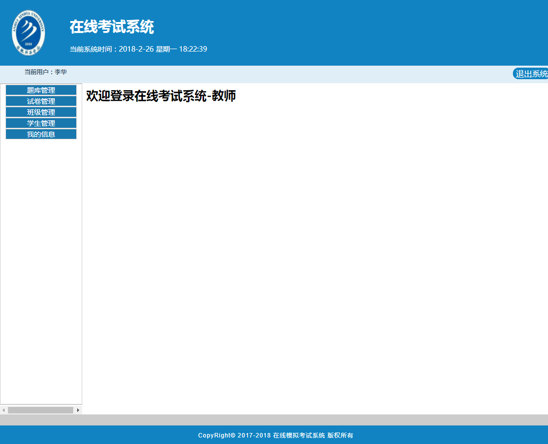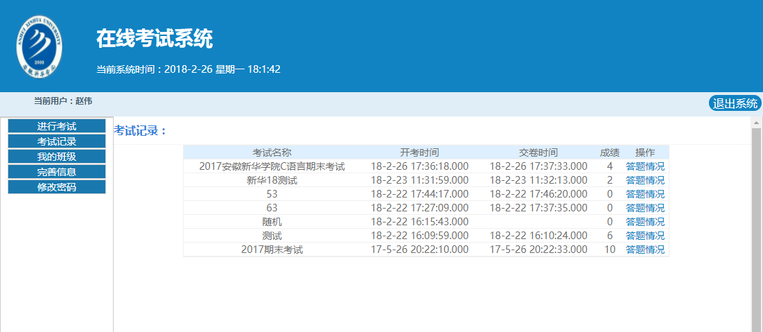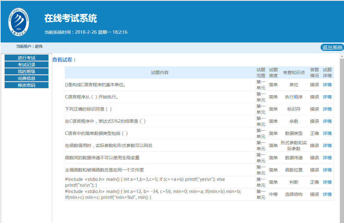 The theme of this project is the design and implementation of online simulation test system. The system is developed by browser / server mode, including login registration, online examination, test paper setting, question management, score statistics and result query. The system runs on the Windows operating system, uses Tomcat as the Web server, and uses the SSH+JSP technology and the MySQL database.