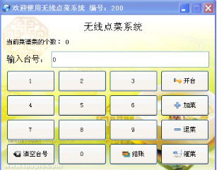 The system consists of the server, the kitchen, the client component, realize the main hotel, get out of order vegetables, user management, the menu management, bill inquires a series of and checkout main function. With simple operation, friendly interface, flexibility is good, the system has high security, stable operation, and other features, is the hotel operator ideal choice.