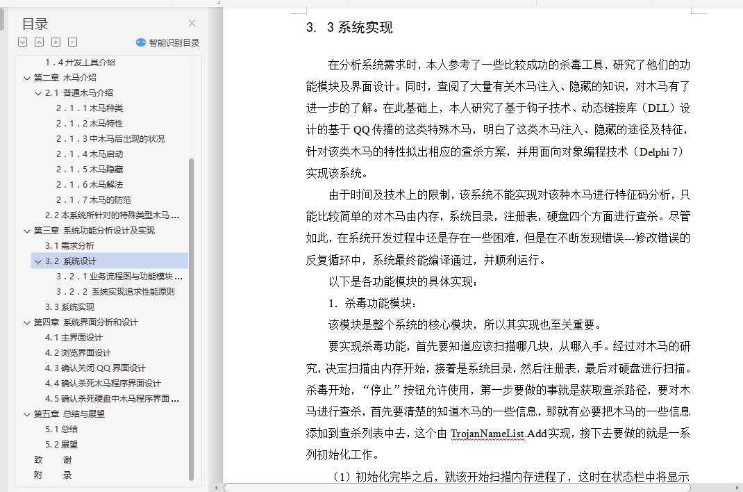 本文所阐述的基于面向对象编程技术(Delphi 7)的木马查杀系统是一个专门针对基于钩子技术、动态链接库(DLL)设计的一类特殊木马的查杀系统。