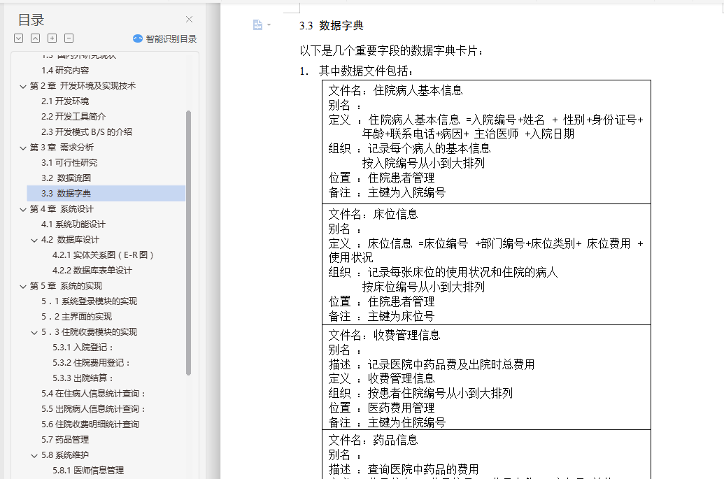 本住院管理系统能够实现对住院病人、病房以及医师的动态管理,简化了医师护士和管理人员的工作,具有检索迅速、查找方便、可靠性高、存储量大、成本低等优点,极大地提高了管理的效率。