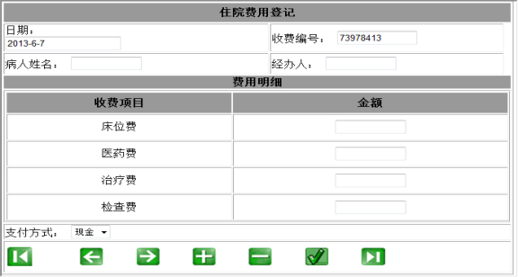 图5- 6 住院费用登记界面图 24