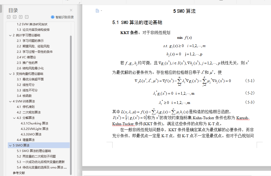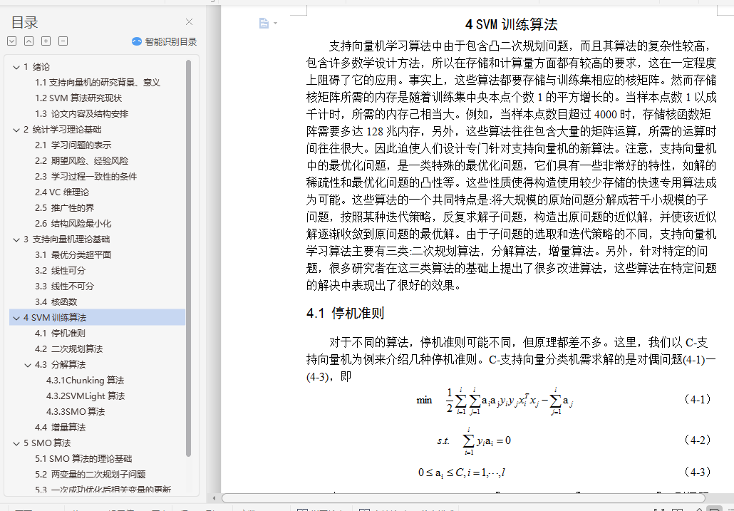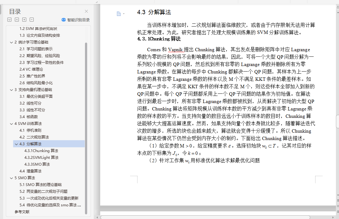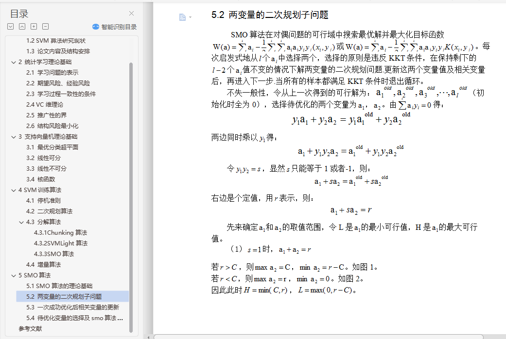 (3)着重介绍了SVM训练算法中比较成功的SMO算法做详细的描述,尤其是算法的推导过程。