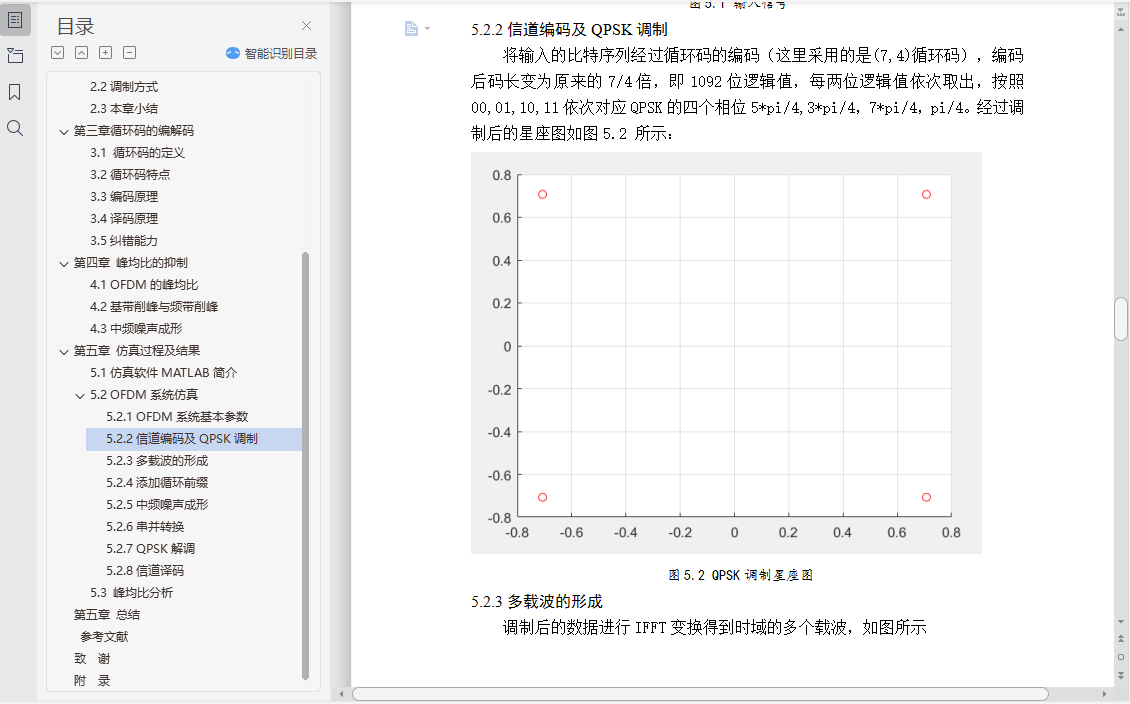 关键词: OFDM 循环码 多载波调制 峰均比 噪声成型