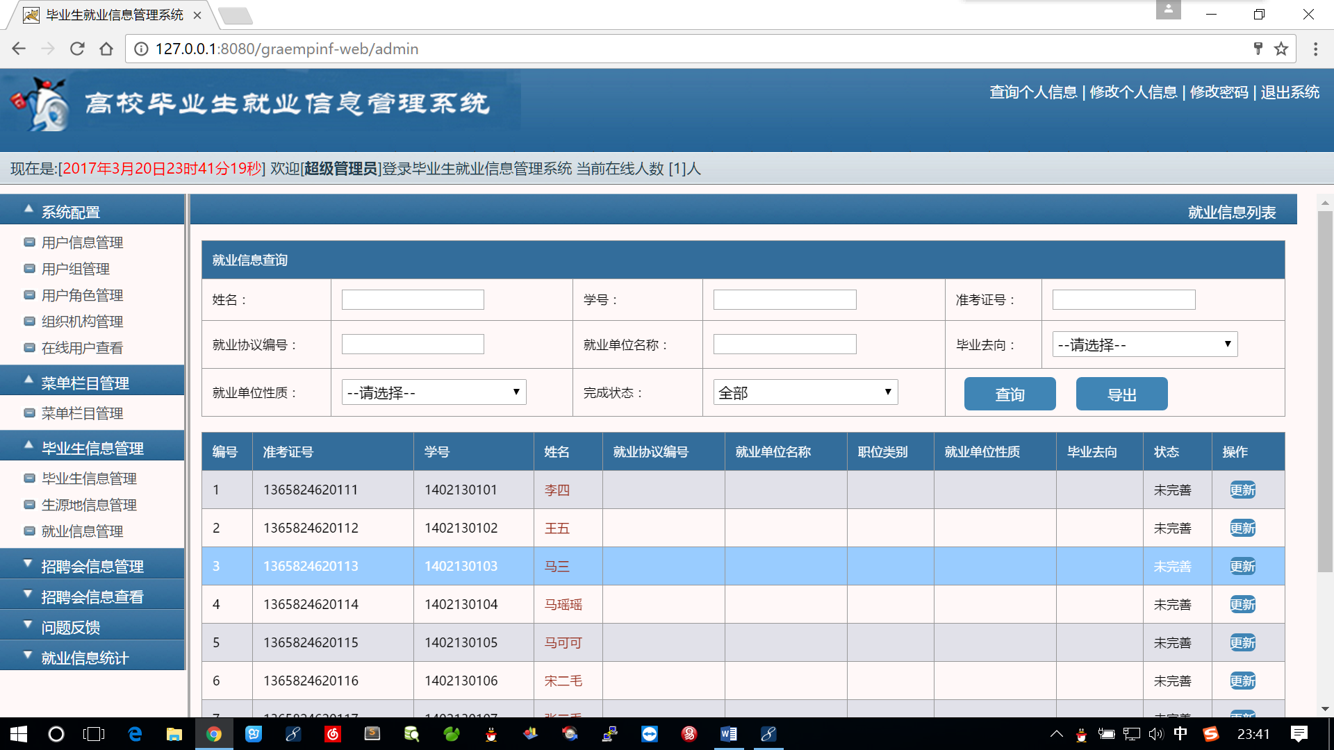 Design and Implementation of Employment Information Management System for College Graduates