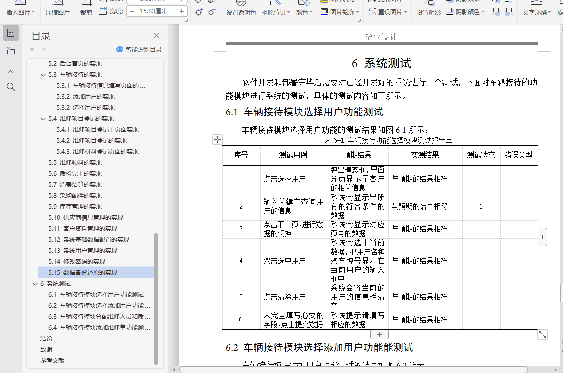 6.3 车辆接待模块分配维修人员和质检人员功能测试 42