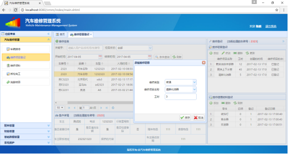 The main problems solved in this paper are: (1) vehicle reception: the system needs to add visitors and their vehicle information, billing operations, and assign maintenance staff and quality inspection staff to the maintenance order. (2) maintenance project registration: maintenance staff can carry out maintenance inspection, register maintenance materials and maintenance hours. (3) maintenance picking: maintenance staff receive maintenance materials. (4) quality inspection completed: quality inspectors quality inspection and input quality inspection results to system. (5) consumer billing: check the maintenance order and make payment operation. (6) accessories management: staff management accessories information.