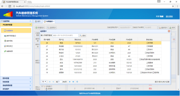 6.2 车辆接待模块选择添加用户功能能测试 41