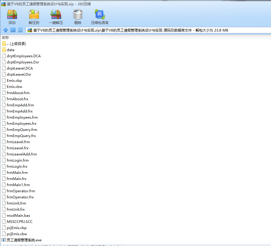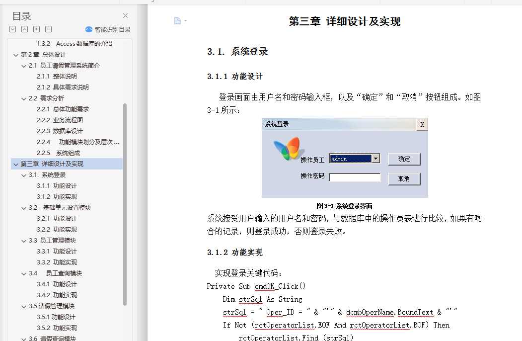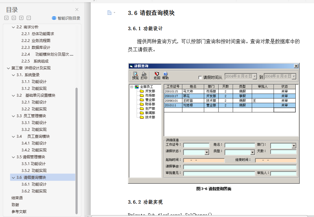 采用VisualBasic编写本系统将为以后的升级提供很大的方便。如果员工请假信息有所扩大而需要升迁至类似于SQL SEVER的大型数据库的话,VisualBasic利用其自身的升迁向导能在几乎不用更改代码的情况下就完成从小型数据库到大型数据库的迁移。