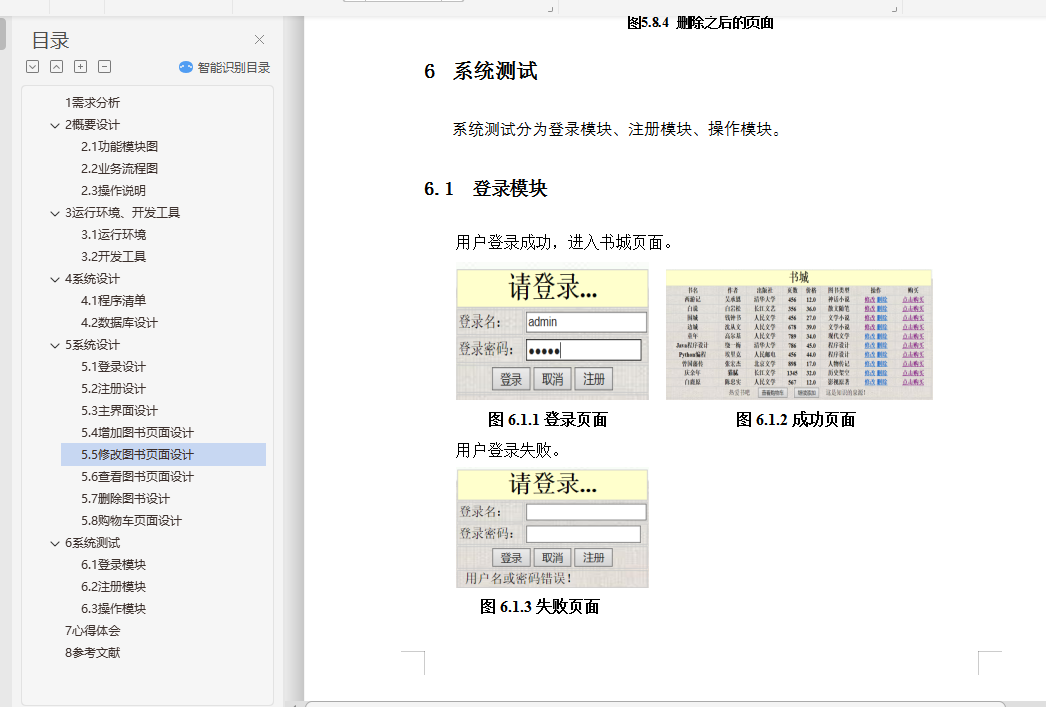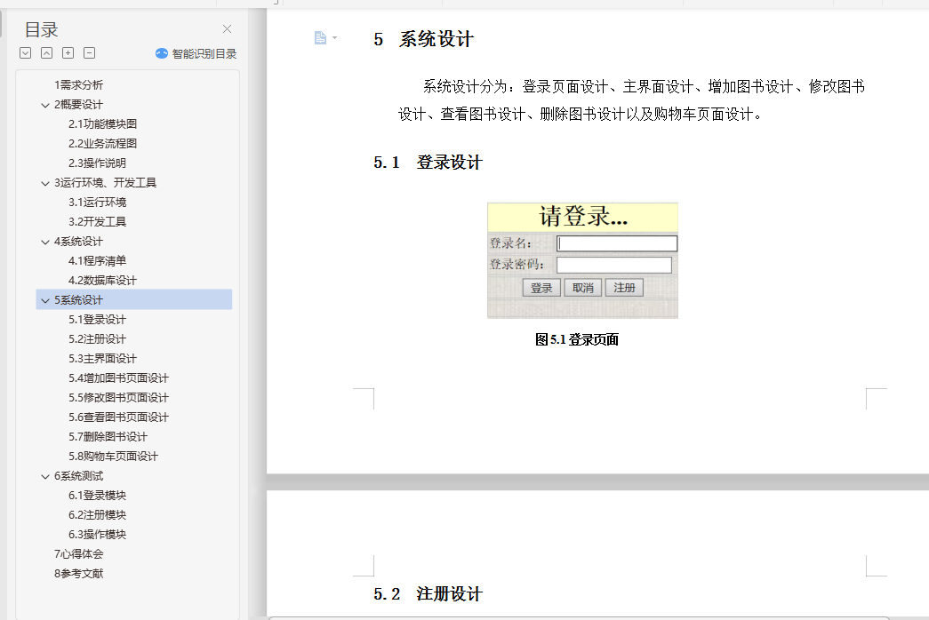 本系统具有登录、注册、以及增加图书、修改图书、查看图书、删除图书和查看购物车等功能。