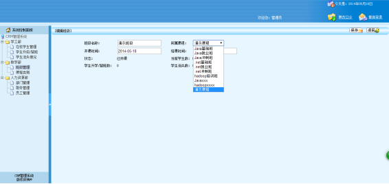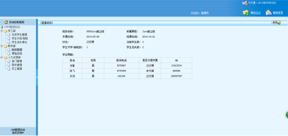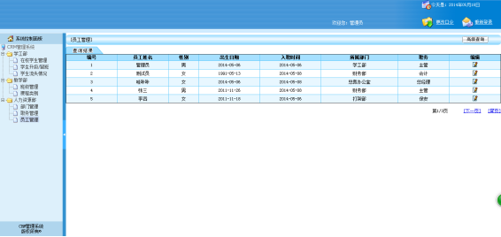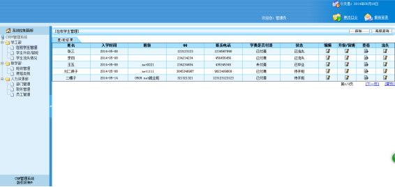 In general use in a computer software today, more and more software is closely related to life necessities, such as: enterprise schools, etc.A wide variety of software brings convenience for people's life, the ultimate goal of CRM system is to be a school and enterprise can more convenient for the personnel management platform.The core of this system is a management platform, and then based on the students and staff, gradually expand to other functions.From software conditions, this kind of person is ability to accept the strongest groups, among them are more likely to promote a new system;From the demand for a management platform officially in today's rapid development of the social need.This system adopts B/S mode, SSH framework, using HTML, JSP technology and mysql database technology, simple operation, easy management, convenience for the users and administrators.The system close to the college life can help college students to get to know more like-minded friends, to make college students life easier and more colorful.