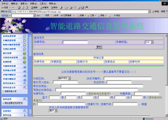 关键词:管理信息系统,违章处罚,智能交通,JSP,JavaBean