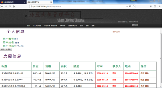 摘要:本文研究并实现了房屋出租管理系统。主要用运了servlet技术、java 技术、jsp网页编程技术、jQuery EasyUI界面美化插件、MySQL数据库技术、Redis数据缓存等技术实现了一个便利、安全、可靠的房屋出租管理平台。在该系统平台上招租者和求租者可以进行信息交流;招租者可以发布房源信息,求租者可以查看房源信息并联系招租者进行房屋租赁。该系统作为人们生活中住房问题的信息承载体,解决了招租者招租难的问题,求租者求租困难的问题,极大的方便了人们的生活。