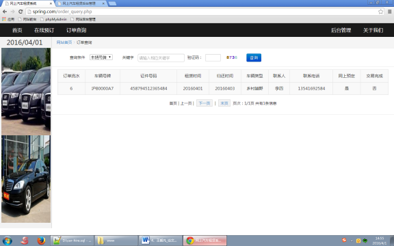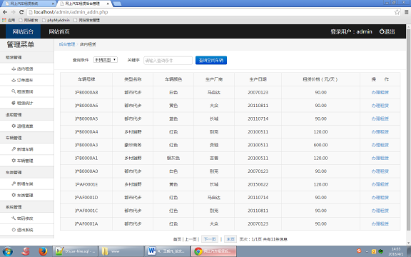 本文旨在构建一个基于B/S模式,功能简单、结构灵活而且轻量、精致的网上汽车租赁系统。文章首先阐述了系统的开发需求和总体设计目标,并对系统开发所采用的技术进行相应的简单介绍。在需求分析结果的基础上,对系统的功能模块进行划分,主要功能包括汽车租赁网站前台(客户服务,包括会员的车辆预定等)及汽车租赁网站后台(后台管理,包括管理员管理、会员管理、车辆预定管理、车辆信息管理、车辆出租信息管理等)两大模块。接着对系统中的数据库进行模型设计,包括E-R图、数据表结构设计等。最后给出了系统中各模块的界面设计与代码实现。