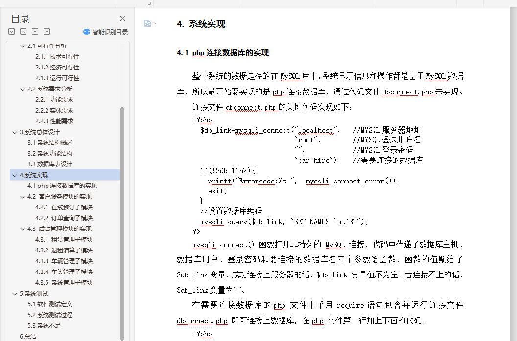 4.1 php连接数据库的实现………………………………………………………………………11