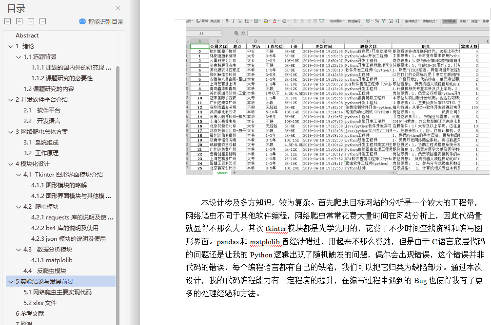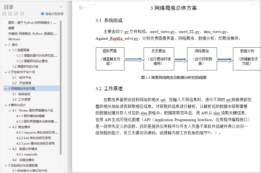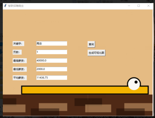 本为的网络爬虫程序主要采用Python脚本语言。使用Tkinter库构造图形界面便于操作,即通过点击对应按钮触发相应功能。数据存储并没有使用SQL和NoSQL,网络爬虫爬取的结果直接以xlsx文件保存,以便于数据的读取并将数据可视化。数据分析采用matplolib库,以pandas库读取xlsx文件,读取获得的数据生成散点图或柱状图以便于观察。