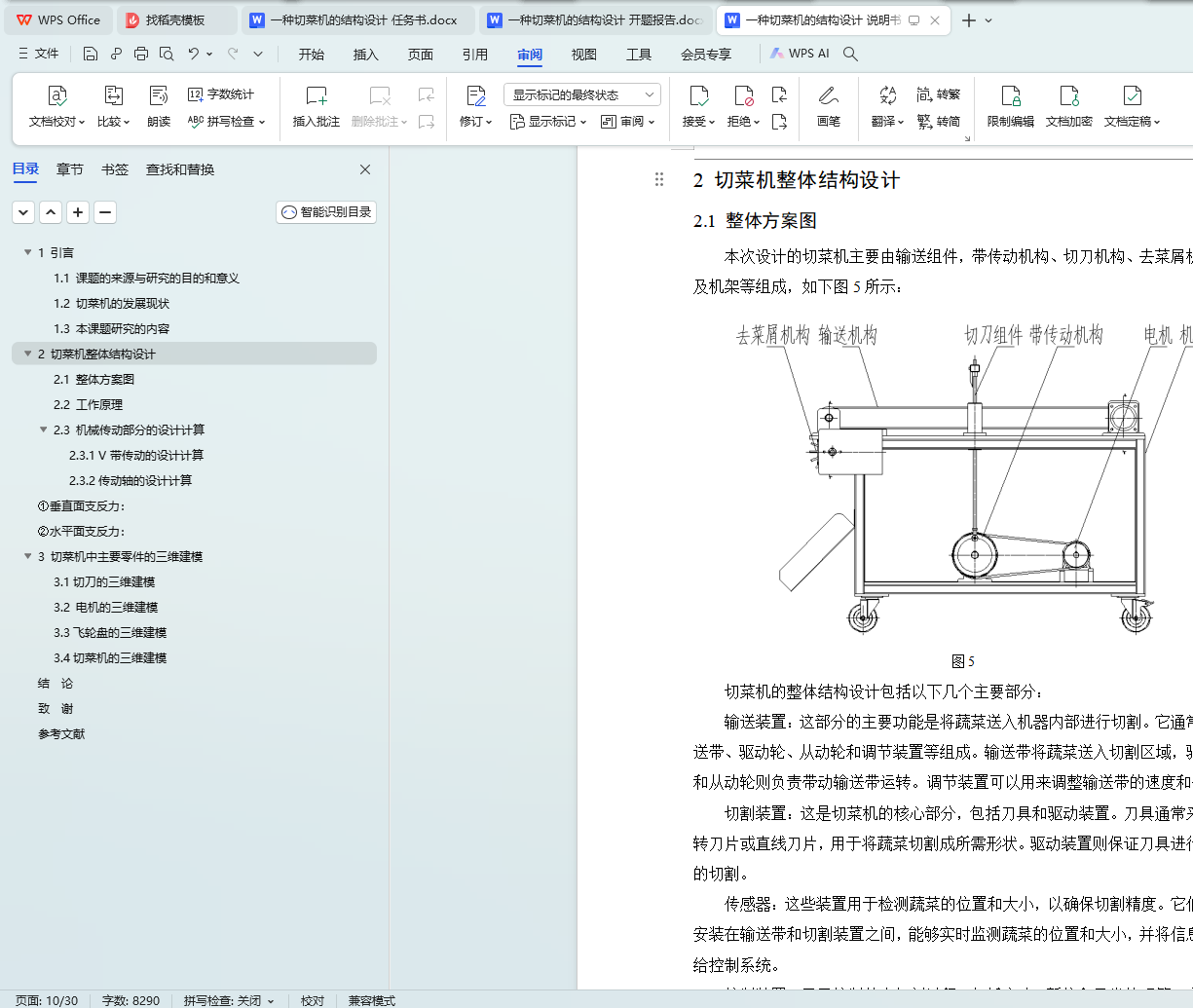 本文设计了一种新型切菜机,旨在提高蔬菜切割的效率和精度,降低人工成本。首先,对切菜机的整体结构进行了设计,包括输入装置、切割装置和输出装置等部分。其次,对切割装置进行了重点设计,采用了圆周排列的刀片组合,实现了多方向、多层次的切割。最后,通过实验验证了切菜机的切割效果和性能,结果表明该机器能够实现高效、精准的切割,提高蔬菜加工的效率和质量。